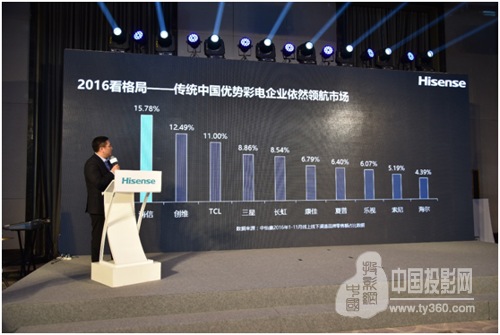 1月12日,海信在北京發布2016-2017電視產業年度發展報告,海信電器總經理胡劍涌對2016-2017彩電市場發展趨勢進行了分析,并提出未來海信將堅持高端精品戰略,以技術引領市場,做全球高端電視領導品牌。