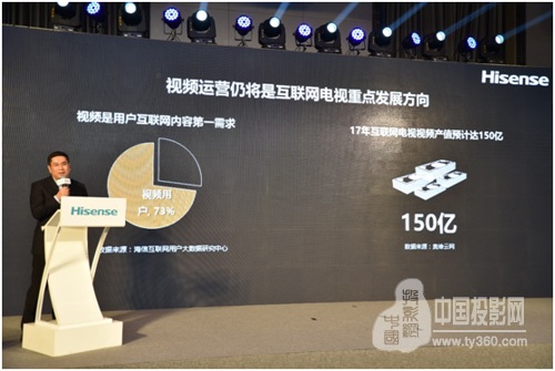 海信報告顯示,在線視頻是互聯網電視用戶第一內容需求,海信互聯網電視視頻用戶數已占到整體激活用戶數的73%。2017年,互聯網電視視頻產值預計將達到150億元,因此,視頻運營仍將是互聯網電視重點發展方向。
