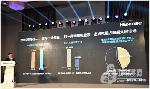 受益于自主技術創新打造的產品優勢,還在高端彩電市場占比一路走高。中怡康數據顯示,海信在55英寸以上高端大屏市場份額已達到17.63%,超越三星,實現登頂,海信激光電視在85英寸以上超大屏市場銷售占比也以超過40%,成為超大屏電視的首選產品。