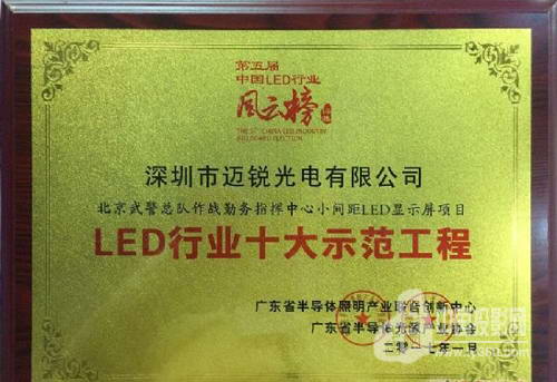最近,邁銳光電接連傳來喜訊!邁銳光電通過了“深圳知名品牌”的續審,繼續獲得“深圳知名品牌”榮譽資質! 幾乎在同一時間,邁銳光電“北京武警總隊作戰勤務指揮中心小間距LED顯示屏項目“參加“第五屆LED行業風云榜”評選,喜獲“LED行業十大示范工程”榮譽!
