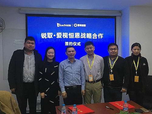 深圳銳取信息技術股份有限公司首席執行官CEO、董事長張秋先生(左三) 愛視恒恩總經理潘禾為先生(左四)