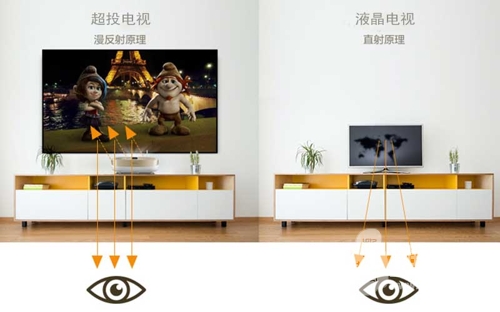 整一套家庭影院投影機,躺著看大片,是很多影音愛好者的夢想。試想下這樣的場景:窗外雨雪紛飛,屋內暖意融融,你正與家人以各種非正兒八經的姿態,窩陷在柔軟的沙發中,看一場對味兒的電影,你們可以隨性而談,也可以肆意哭笑,甚至還可以擼個串……這是在任何電影院都得不到的閑適和美好,但明基智能超投電視可以幫你做到。得益于TIR反射光學構架和時新的DLP投影技術,明基超投電視只需要49cm寬的空間距離,放在電視柜上,就能輕松投射100吋1080P高清大屏畫面,在家也能好好看一場電影。且它無須吊裝調試,開箱即用,簡單方便,全家老小都會用。相比一般家用投影機,簡直是傻瓜操作啊!