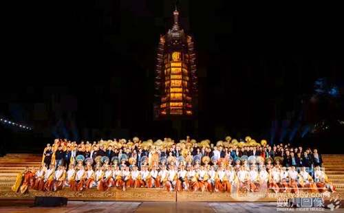報恩盛典:78.2米高塔身3D投影,41.8米*10.6米最大尺寸佛龕墻投影區域,兩部分舞臺遙相呼應,呈現富有層次感的舞臺表演