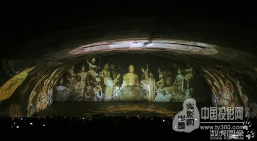 西夏盛典:360°環形吸幕投影抓人眼球,結構投影與三維建模還原雕塑影像與山體碎裂,呈現最神秘古西夏歷史