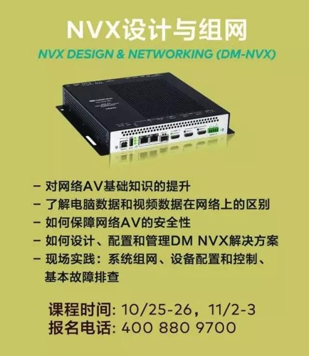 這個課程包含了網(wǎng)絡(luò)AV的設(shè)計和安裝需求以及運用快思聰NVX 解決