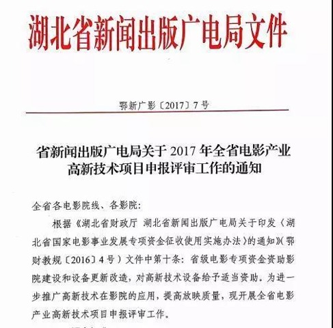 十一前夕,國家新聞出版廣電總局電影局向各省、自治區(qū)、直轄市新聞出版廣電局,中國電影發(fā)行放映協(xié)會,各電影院線公司,各電影院下發(fā)《國家新聞出版廣電總局電影局關(guān)于進(jìn)一步加強(qiáng)影院放映技術(shù)管理的通知》,再次強(qiáng)調(diào)各影院要加強(qiáng)電影院放映技術(shù)標(biāo)準(zhǔn)的學(xué)習(xí),嚴(yán)格執(zhí)行《數(shù)字影院暫行技術(shù)要求》、《數(shù)字影院立體放映技術(shù)要求和測量方法》等規(guī)定,確保影院銀幕亮度、清晰度、色溫、均勻度、平整性,以及影廳還音響度與頻響技術(shù)指標(biāo)符合標(biāo)準(zhǔn)要求。而近日,為了進(jìn)一步推廣、鼓勵高新技術(shù)在影院的應(yīng)用,繁榮地區(qū)電影市場,保持地區(qū)電影市場的穩(wěn)定增速,湖北省近日出臺了“高新技術(shù)”資助申報的通知,對應(yīng)用高新技術(shù)的影院予以一次性資助,以鼓勵影院對放映技術(shù)的升級改造,其中,中影光峰ALPD®激光熒光粉技術(shù)也在資助范圍之列。