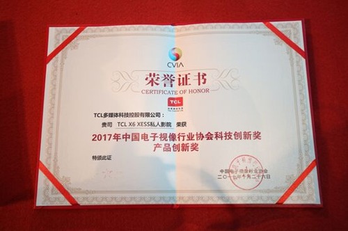 同時為了激勵和引領音視頻產業相關領域技術和應用的發展,會上頒發了“2017中國音視頻產業創新獎”以隆重表彰行業內年度突出成就和重大成果。TCL在本次會議上榮獲了人工智能應用創新獎,旗下高端電視產品X6 XESS私人影院則斬獲了產品創新獎。
