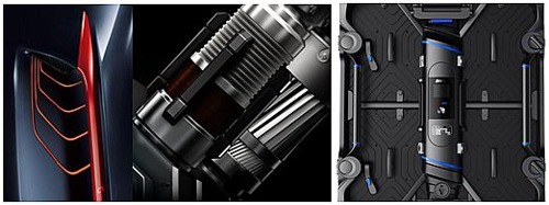 在X-Plus整體充斥工藝感的基調(diào)上,設(shè)計(jì)者們又從細(xì)節(jié)入手,在引擎中得到了靈感。箱體上與控制盒連接處被設(shè)計(jì)成螺旋的階梯狀外形,與控制盒傾斜的邊緣設(shè)計(jì)融為一體。模組上也通過多次修改,設(shè)計(jì)了對稱紋路。這些有層次的線條設(shè)計(jì)給產(chǎn)品增添了一股機(jī)械感。