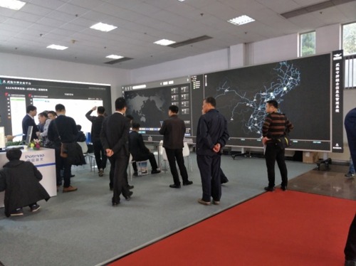 本次展會主要是北京環宇藍博科技有限公司和中國普天信息產業股份有限公司合作的方式進行產品展示,LANBO參展的屏幕一套是阿波羅系列9.6×2.7米的屏幕,主要顯示“武裝守押綜合信息化管理系統”,另一套是雅典娜系列4.8×2.4米的屏幕,主要顯示“全國高端物流聯合運輸平臺系統”,中國普天為保安行業提供系統的解決方案,本方案主要運用武裝押運系統,采用了物聯網、云計算、大數據、區塊鏈、人工智能、深度學習、北斗定位及信息加密等信息科技技術,給現有的武裝押運公司提供更便捷的管理和銷售,使整個過程更安全,可以把這些監控信號實時投在平板投影上顯示,讓指揮中心的人員一目了然。