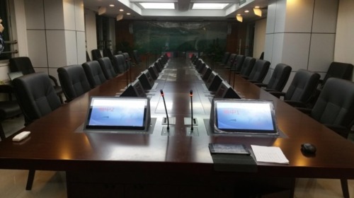 該項目主要安裝了TENON(騰中) 15.6寸向上翻轉觸控一體機21臺, 話筒升降器21臺, 無紙化會議終端20臺,數字會議控制主機1臺,數字編解碼器1臺,數據交換中心1臺,16路音頻矩陣2臺,中央控制器1臺,8路混合矩陣1臺,無線路由1臺等。通過這些設備,實現對無紙化智能會議系統的有序控制,方便快捷。