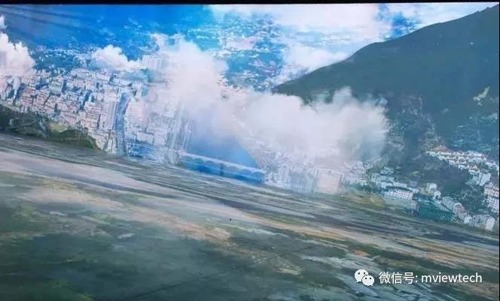 該沉浸式體驗(yàn)廳的投影顯示系統(tǒng)是由大視MM5000B彩虹系列多通道融合處理 驅(qū)動(dòng)42臺(tái)松下投影機(jī)組成,上下分為天幕和地幕,呈L形組合。