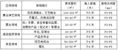 表1 舞臺租賃領域點間距需求