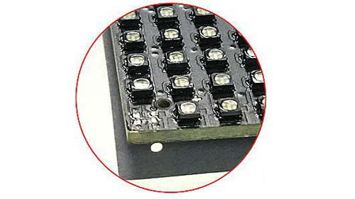 C系列的PCB設計也采用德彩光電獨創的防撞焊盤設計。市面上一般的LED顯示屏LED燈被撞掉后如果焊盤也被撞掉,則只能通過飛線或者LED將無法再維修。經測試,目前市面上常規的LED與焊盤的拉力測試為30-40N,我們的C系列達到了70-80N。所以,采用德彩光電C系列的防撞焊盤的設計即使LED燈被撞掉,焊盤不易損壞,極大地提高了LED燈的可維護性。