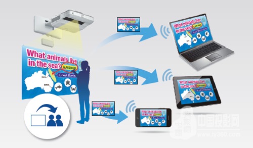 課堂教學(xué)越來越離不開投影設(shè)備的支持,老師們幾乎每堂課都需要用投影機(jī)展示課件,或者把學(xué)生的作業(yè)用投影展示出來解析,從而加深學(xué)生對知識點(diǎn)的認(rèn)知。然而這種教學(xué)方式需要老師提前將相關(guān)資料拷貝到電腦上,而愛普生教育超短焦互動投影機(jī)無線投影功能讓課堂擺脫這樣的“流程”束縛,輕松實(shí)現(xiàn)無線分享。