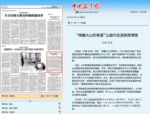 *引自《中國教育報》20171014期第03版《“喚醒大山的希望”公益走進陜西渭南》