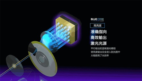 高密度激光模組方面,為提升亮度、促進光學系統小型化,明基用全新模塊化架構的激光發光模組取代獨立激光單體,提升能量密度,也讓熒光轉換后的光線更多地集中到DMD芯片上。