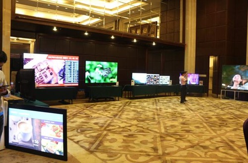 在研討會現場,飛利浦商用顯示系統帶來了主要展品包括:55英寸高亮雙面屏、超值QQ系列55和49英寸商用顯示器、55英寸X系列超窄邊拼接單元、84英寸U超清4K系列顯示屏、HUF6982系列新一代支持畫中畫顯示的4K智能商用電視、點距1.5mm的小間距LED屏等。