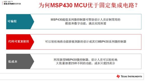 TI將繼續深化MSP430微控制器產品系列的投入和開發,針對MSP430系列,TI在超低待機功耗上取得了新的創新成果,增加了集成式模擬和無線更新,并利用FRAM技術提升了閃存的靈活性:通常RAM比率會限制用戶數量。