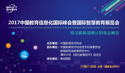2017中國(guó)教育信息化國(guó)際峰會(huì)暨國(guó)際智慧教育展覽會(huì)通過(guò)各家組織機(jī)構(gòu)的共同努力及完善的籌備工作,期待與各位教育從業(yè)者及關(guān)注者于11月27~29日相約在北京國(guó)家會(huì)議中心,共同見(jiàn)證中國(guó)教育信息化事業(yè)的發(fā)展成就!