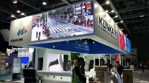 康佳展區(qū)本次科技感十足,不僅因?yàn)橛衅馏w厚度僅3.66mm的超薄OLED壁紙電視、R1變頻電視、A1人工智能電視等精致高科技產(chǎn)品,更是因?yàn)楸敬慰导颜桂^大面積使用了康佳商顯小間距顯示屏。變幻多樣、絢麗多彩的宣傳視頻、海報,以康佳商顯高清高品質(zhì)小間距LED屏為載體,高端大氣、精致現(xiàn)代,科技?xì)庀⒄宫F(xiàn)地淋漓盡致!