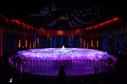 十九大牽動著全球華人的目光,喜迎黨的十九大勝利召開特別制作節目《壯麗航程》的文藝表演也讓人驚嘆,懸掛著黨徽的舞臺莊嚴肅穆,360度全角度攝影藝術形式大氣絢麗,藝術家與演員們在舞臺上高歌熱舞歡迎十九大。同時,表演還融合了先進的聲、光、電技術,璀璨奪目的迷幻紗幕讓觀眾再一次見證了松下工程投影機的精彩表現!