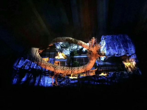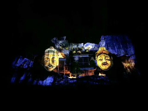 畫面中,我們可以看到凹凸不平的峭壁上,投影并沒有發(fā)生扭曲,反而十分生動。接下來,讓我們欣賞“悅響川洞,飛越田園”更多投影精彩!