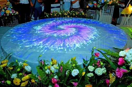 鴻合數字宴會廳是由投影設備、數字內容、影像展示系統等三大塊構成。整裝后的效果,實現了空間環境的統一性,更為立體地展現了每一個場景,沉浸式的環繞效果,使每位在場賓客置身于3D場景之中,產生身臨其境的美妙感覺。