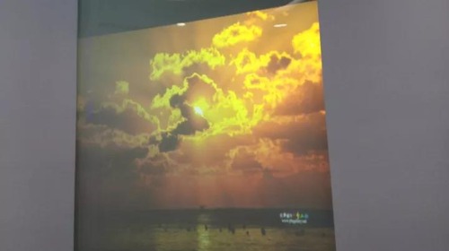 這一畫面是投影機將動態影像投射到櫥窗上,同樣是在日光照射下,影像卻十分鮮明艷麗,完全沒有發白,色彩也很有層次感。