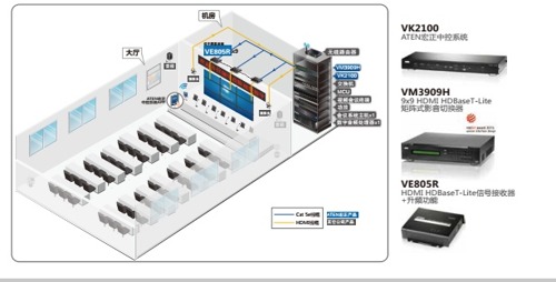 ATEN宏正矩陣VM3909H與VE805R接收器搭配使用,可支持ATEN宏正的無縫切換