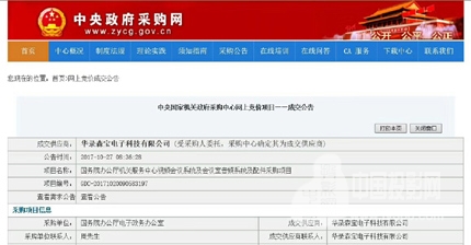 2017年10月27日,華錄激光投影電視中標“國務院辦公廳機關服務中心視頻會議系統及會議室音頻系統及配件”采購項目,公示于中央政府采購網(http://www.zycg.gov.cn/),并于11月9日成功實施安裝落地。