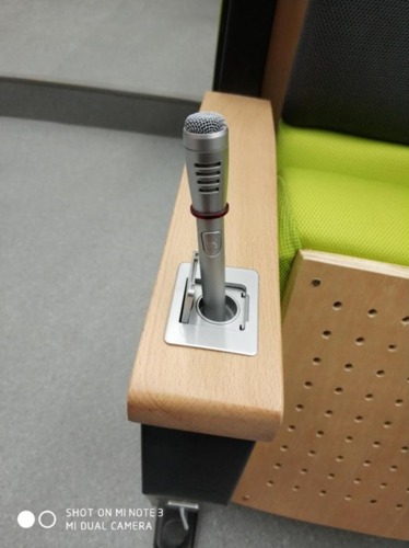另外,整個會議系統中使用的全數字扶手式會議單元RX-6810,是雷蒙電子多年深入研究會議系統技術的成果結晶。在會議室中,以嵌入形式安裝在座椅扶手上,配合投票表決面板及通道選擇器面板實現會議更多的增值功能。同時,會議單元配置保護蓋,方便不使用的情況下保持座椅平整,及清理時具備防水功能。