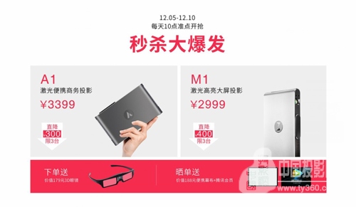 你沒看錯!秒殺大爆發(fā),12.05-12.10 日每天10點(diǎn)開搶光峰A1激光便攜商務(wù)投影機(jī),直降300元(限3臺),下單即送價(jià)值179元3D眼鏡 ,曬單再送價(jià)值188元便攜幕布+騰訊會員,到手價(jià)僅3399元;