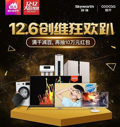 現在開始行動,一切都還不算晚,12月6日創維全品類在京東開起狂歡趴活動,滿千減百,再抽10萬元紅包。現在登錄進京東商城搜索“創維電視”/“創維H7”,或點擊鏈接:https://sale.jd.com/act/4s6aESvdgt.html 一鍵直達,好貨任你選。
