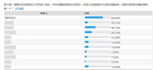 調查結果顯示,用戶在建設錄播教室時,現代中慶的品牌傾向度最高。68.42%的用戶表示在第一時間想到了“中慶”品牌!中慶在2017年的調查中位居榜首,且遙遙領先!這得益于中慶24年來用技術和服務得到的用戶信任。新時代下中慶帶著用戶的信任繼續前行,率先將人工智能技術引入錄播,在錄課的同時對對師生的課堂行為進行全方位實時分析,形成海量的課堂大數據,為教育管理者、老師、學生教學、教研、管理和學生個性化學習提供精準的數據服務。中慶智課的推出再一次夯實了中慶在錄播行業領頭羊的市場地位!是中慶根植教育、服務教育的又一創舉!