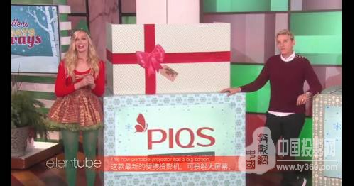 Ellen: “ You’re all getting the $600 PIQS Virtual Touch Projector”(大家將會得到這個價值600美金的PIQS神畫智能觸控投影。)