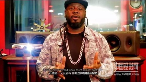 貝絲·比厄:” This new portable projector has a big screen, sleek modern design, and it includes a virtual touch remote allow you to interact with the screen up to 20 feet away(這款最新的便攜投影機,可投射大屏幕,劃時代的外型,而且包含神筆,可讓你遠在數米外也能操控自如)。 “