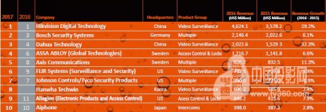 2017全球安防50強TOP10