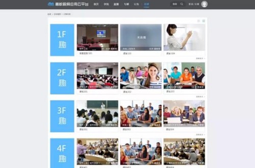 基于高校教育管理和教學質量監督的需求,高校視頻應用云平臺新增了遠程在線巡課服務。以教學樓為單位,升級版平臺清晰地展示錄播教室的數量、正在直播的錄播教室、課堂名稱及授課教師介紹等信息,為領導及督導提供可視化的巡課入口地圖。