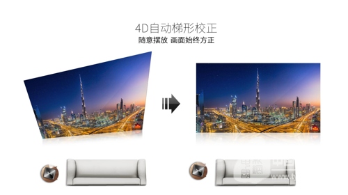神畫科技負(fù)責(zé)人那慶林就宣布其即將上市的產(chǎn)品F1將采用“4D自動(dòng)梯形校正”技術(shù),實(shí)現(xiàn)上下左右四個(gè)方向快速自動(dòng)梯形校正,也即,用戶可以隨意選擇擺放位置,擺放角度及投放屏幕的遠(yuǎn)近與形狀,都能瞬間看到滿意的畫面。