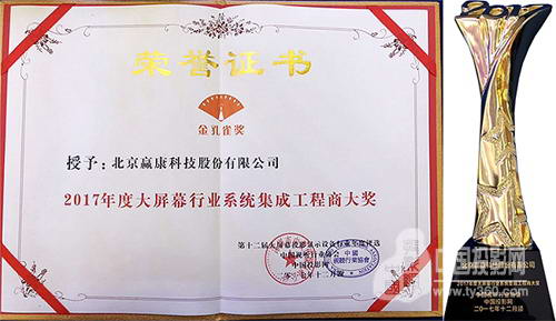12月8日,由中國投影網聯手數字標牌網以及音響網打造的“2017年視聽行業高峰論壇”在深圳盛大開幕,作為中國視聽行業一年一度的行業盛典,一直以來都是業內影響力最大、參與度最廣、最具權威性的行業盛會。在同時舉行的第十二屆中國大屏幕投影行業年度評選頒獎典禮上,贏康獲得了“2017年度大屏幕行業系統集成工程商大獎”與“2017年度優秀案例大獎”。