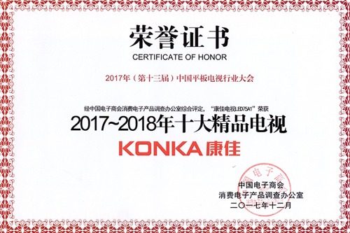 康佳斬獲2017中國平板電視行業大會多項大獎