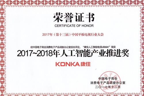本次大會整合了今年市場上的電視新品的客觀監測,根據檢測結果及產品市場美譽度,評選出了2017-2018年表現突出的各類電視產品。康佳A1電視表現突出,LED75A1獲得“2017-2018年十大精品電視”,LED65A1斬獲“2017-2018年人工智能產業推進獎”殊榮,康佳變頻電視技術榮獲“2017-2018年高品質色彩顯示獎”。