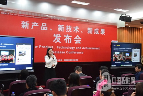 此次發(fā)布會上共發(fā)布了9項(xiàng)新產(chǎn)品、新技術(shù)、新成果,其中包括廣州視睿電子科技有限公司產(chǎn)品——希沃信鴿,廣州市奧威亞電子科技有限公司產(chǎn)品互動(dòng)新應(yīng)用(遠(yuǎn)程教學(xué)),福建省閩駿科教設(shè)備有限公司產(chǎn)品褲兜CODE少兒編程學(xué)習(xí)機(jī)器人,山東建榮教學(xué)設(shè)備有限公司產(chǎn)品國學(xué)一體機(jī)、設(shè)備、軟件、裝修,北京華文眾合科技有限公司產(chǎn)品華文眾合智云數(shù)字書法系統(tǒng),康智達(dá)數(shù)字技術(shù)(北京)有限公司產(chǎn)品樂畫美術(shù)教學(xué)軟件等。