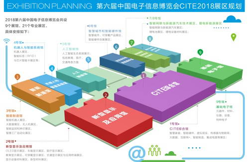 CITE2018將瞄準信息技術最新發展趨勢,突出“智領新時代 慧享新生活”這一關鍵詞,展示電子信息全產業鏈,包括:移動智能終端、智能機器人、人工智能、智慧家庭、智能硬件、虛擬現實與增強現實、傳感器與物聯網、大數據、互聯網+、智能制造、新型顯示、LED、集成電路、高端元器件、特種元器件、新能源汽車產業鏈、電子儀器與設備等。第六屆中國電子信息博覽會使用深圳會展中心全館,超過10萬平方米的面積瞄準信息技術最新發展趨勢,展示電子信息全產業鏈。按照展覽內容和特色,博覽會共分為——1號館:CITE綜合館,主要包括:智慧家庭、智能硬件、虛擬現實、傳感器與物聯網、大數據、互聯網+、智能制造、集成電路等展區;2號館:新型顯示及應用館,主要包括:OLED顯示展區、車載顯示展區、醫療顯示展區、教育顯示展區、可穿戴顯示展區、交通顯示展區與應用終端展區、顯示設備材料展區、新型材料展區;3號館:智能制造館,主要包括:智能機器人展區、大數據展區、無人機展區、智能監控和辨識展區、智慧工廠自動化展區;4號館:機器人與智能系統館,主要包括:機器人展區、智能標簽(RFID)與芯片智能卡展區等;5號館:人工智能館,主要包括:人工智能生態系統展示,包括教育、醫療、交通等各方面;6號館:智慧城市和智能硬件館,主要包括:智慧城市、可穿戴產品展區、智能硬件創客展區;7、8號館:智能網聯與新能源汽車技術展區、鋰電新能源展區,智能網聯與新能源汽車展區;鋰電池展區、鋰電設備材料展區;9號館:基礎電子館,主要包括:元器件、材料、儀器、設備、特種電子。