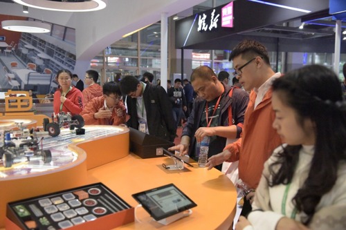 本次展會,八爪魚教育最具特色的展示在互動區里,通過扣像技術,模擬火星車在火星表面行走,在屏幕上還原火星車在外太空探索的場景,生動真實地給大家呈現了八爪魚最后一個智慧創客主題課程——火星探秘。