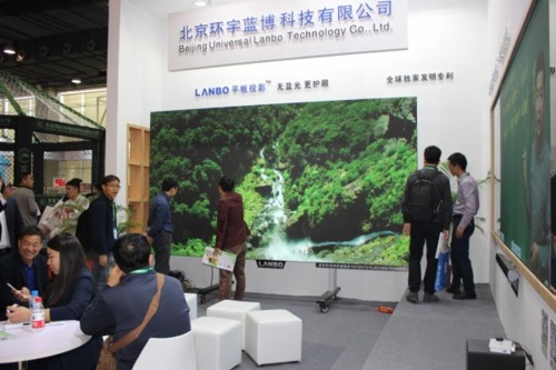 北京環(huán)宇藍博攜自主研發(fā)的平板投影亮相本次展會現(xiàn)場。一經(jīng)亮相,LANBO平板投影展區(qū)便吸引了大批參展人員的到來,火爆的人氣從早上一直持續(xù)到下午五點閉館,現(xiàn)場人潮涌動、熱鬧非凡,贏得過往觀眾的美譽和稱贊。