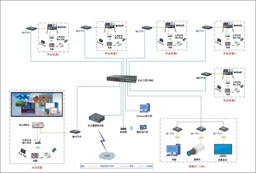 隨著多媒體技術和數字通訊技術的飛速發展,信息量越來越大,視頻源也越來越多,類型也越來越復雜,處理信息的手段也越來越先進,傳統的會議室系統設備已經不能滿足越來越多樣化的視頻源接入和快速調度的需求,為此廣州眾贏設計了無線互動演示系統與分布式圖像處理系統,以滿足用戶多樣化的需求。