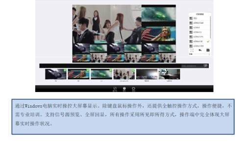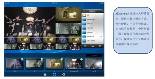 分布式圖像處理系統可對多設備采集到的視頻信息進行統一管控;并具備信號開窗、拼接、漫游等屏幕操作功能。同時,通過操作客戶端軟件,還可以在iPad、觸屏電腦上對屏幕進行可視化操作,易于操作和維護。可在任意地點實時呈現,任意信號源的采集,可將分布于任何地點的各種信號整合,匯聚各種系統的音視頻多媒體信號和人機輸入輸出界面,打造綜合實時信息統一的指揮決策平臺。