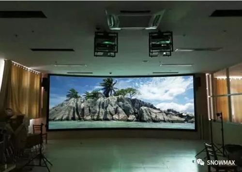 山東某高校在校圖書館內建立一個3D教學體驗實驗室,由于實驗室空間較大,為了達到最佳體驗效果,需要在弧形墻面上實現7*2.5米的3D投影效果,如此大的投影積,既要做到3D效果,又要做到多個畫面無縫拼接,而且教育教學不同于一般的電影院,對圖像的清晰度和分辨率要求都非常高,最終,SNOWHITE白雪利用4通道投影融合出完美的3D解決方案