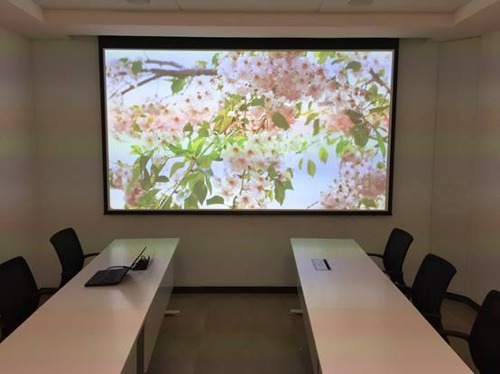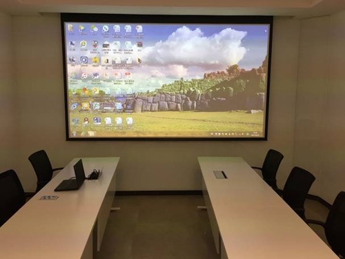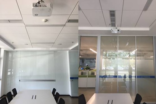會議室的大面積玻璃墻采光較亮 對投影機亮度有高要求